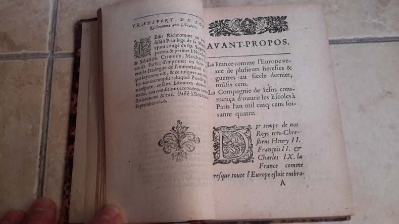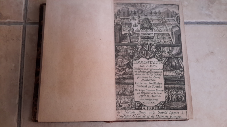 Reliure fendue au dos, manque en tête, intérieur en parfait état, gouttières irréprochable. Format 110×175m/m Ouvrage dédié au très illustre Cardinal de Sourdis.