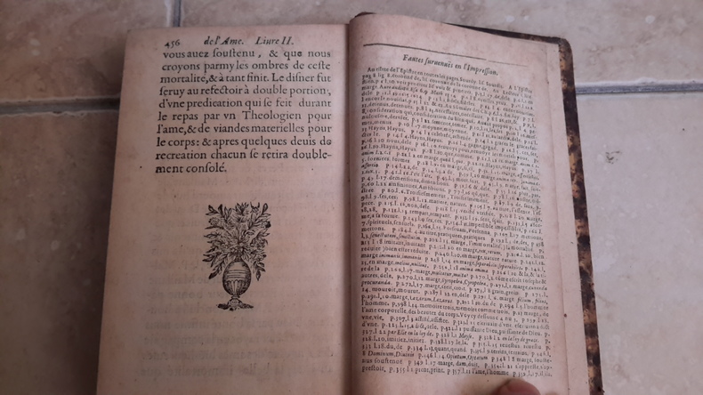 Paris, chez Nicolas Buon rue Saint-Jacques à l'enseigne St-Claude et de l'homme Sauvage, 1621, reliure 19eme demi-maroquin, dos lisse à textes or. 1ère édition. Frontispice pleine page gravé, 456 pages, lettrines et culs-de-lampe. (Jp15)