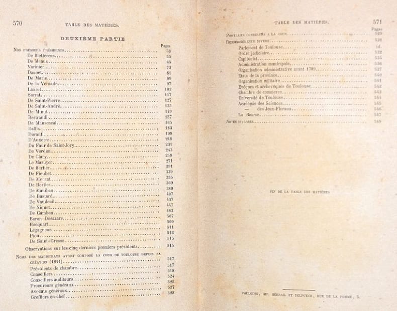 1882 Toulouse, Sistac et Boubée , Paris, Arthur Rousseau, 1882 ; in-8° demi-chagrin brun lissé de l'époque, dos à nerfs soulignés de filets gras à froid, auteur et titre dorés; XIV( dont le titre en noir et rouge), 571pp.