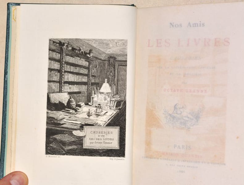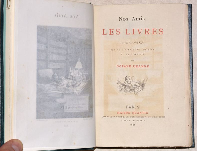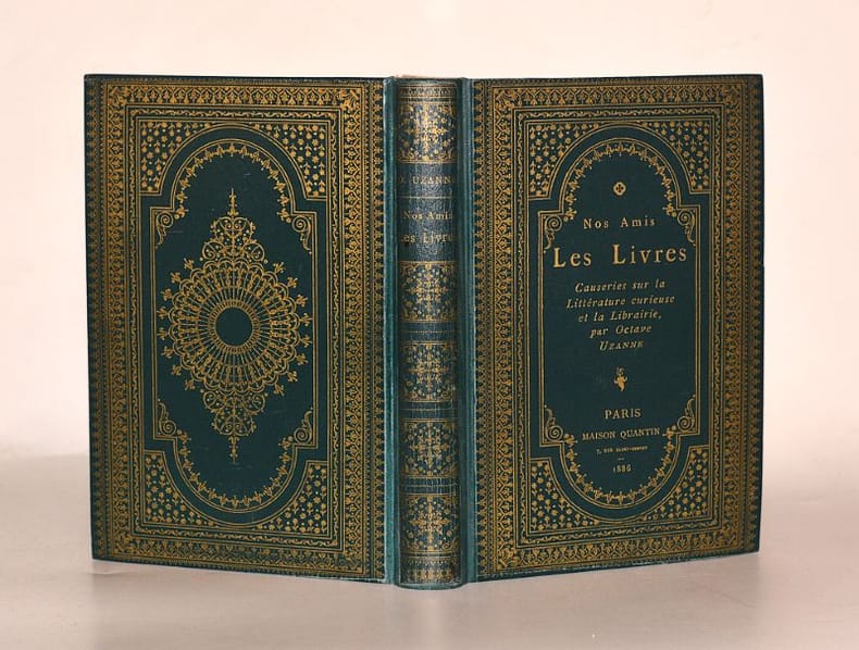 1886 Paris, Quantin, 1886. In-12 (182 X 132 mm) Bradel demi-toile vert lierre, couverture de l'ouvrage soigneusement rapportée sur les plats et le dos, tête dorée (Vernhes, Relieur - Montpellier) ; (3) ff., frontispice, IV-318 pages, (1) f. d'achevé d'imprimer. Décharge du frontispice sur la page de titre, malgré la serpente.
