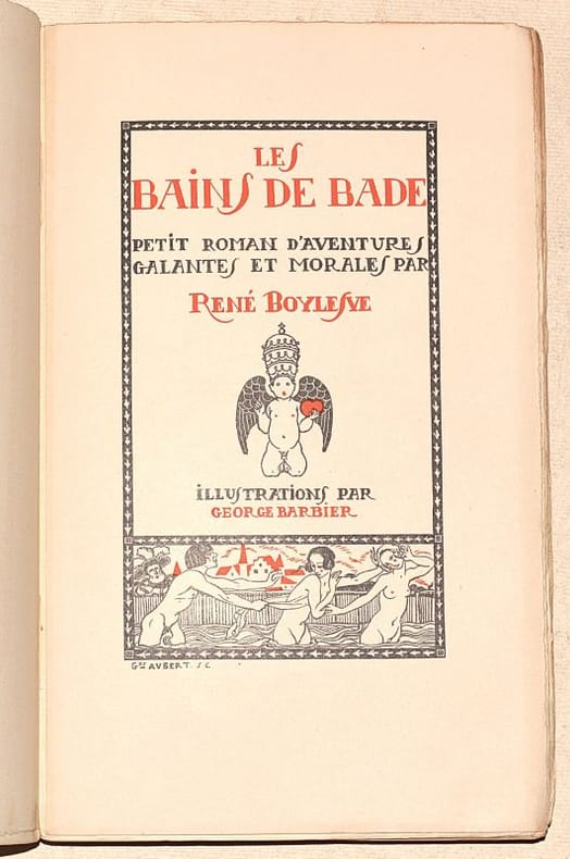 ÉDITION ILLUSTRÉE de 38 COMPOSITIONS par le peintre, dessinateur de mode et illustrateur français George BARBIER (1882-1932), très lié à l'Art Déco. Elle contient 7 PLANCHES hors-texte en camaïeu sur vélin fort et 14 en-têtes, 13 culs-de-lampe, 1 dessin sur le premier plat de la couverture et sur le titre-frontispice illustré en rouge et nor, vignette de titre et un dessin à pleine page : l'ensemble est gravé sur bois par Georges Aubert. Tirage limité à 1200 exemplaires numérotés sur vergé d'ARCHES (n°361). AGRÉABLE EXEMPLAIRE, au corps d'ouvrage en PARFAIT ÉTAT, sans rousseur. NICE COPY. PICTURES AND MORE DETAILS ON REQUEST.