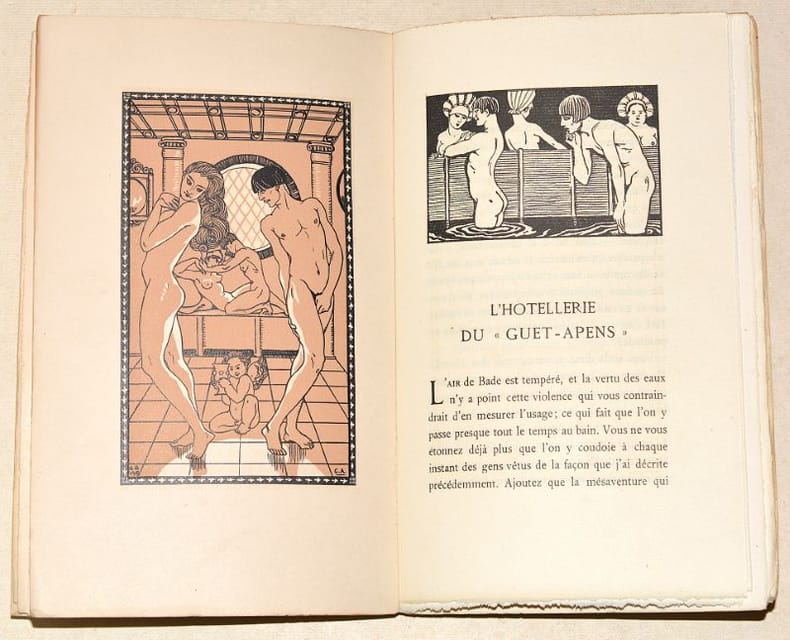 Paris, les éditions G. Crès & Cie. 1921, in-8vo, XV + 147 p. 3 ff, . Illustrations de George Barbier gravées sur bois par Georges Aubert brochure originale illustrée.