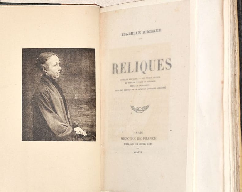 1921 Paris, Mercure de France, 1921, avec la date de 1922 en couverture. Mention de quatrième édition. Tirage justifié. Présentation de Nicolette Hennique, préface de Marguerite-Yerta Méléra, postface de Marguerite Gay. In-12 broché de 215 pp., orné d'un portrait d'Isabelle Rimbaud en frontispice. Couverture légèrement usagée, sans manque, dos solide. Intérieur en bon état, sans annotations ni soulignements.