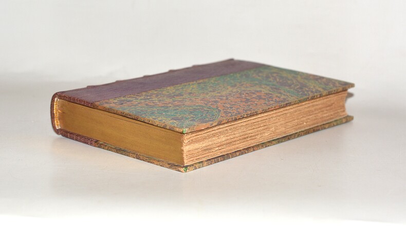 1899 Paris, Fayard, 1899. In-12 (126 X 188 mm) demi-maroquin lilas, dos cinq nerfs, auteur et titre dorés, tête dorée, plats de la couverture conservés (reliure de l'époque); XIV-306 pages. Teinte du dos uniformément virée en teinte havane clair, petite trace de griffure dans un compartiment. Ex-libris gravé en rouge collé sur le premier contreplat.