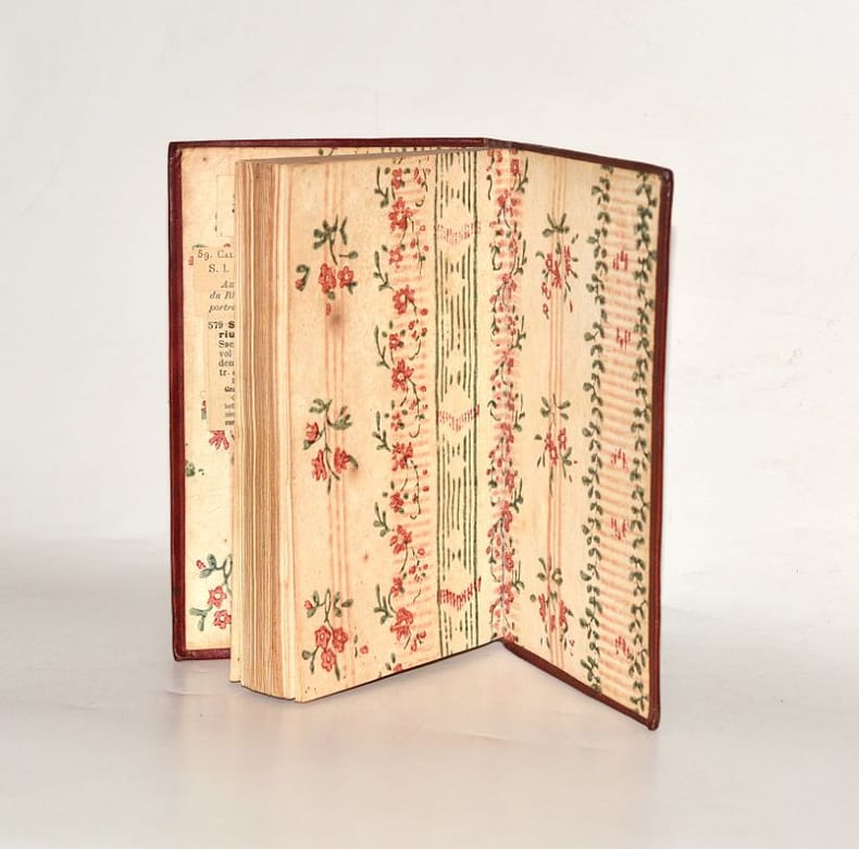 1783 S.l.n.e., [c. 1783]. In-12 (166 X 103 mm) maroquin rouge, plats ornés d'un large encadrement de roulette dorée avec armes frappées or au centre, dos lisse muet cloisonné de filets dorés, gardes ornées d'un décor floral peint, tranches dorées (Reliure de l'époque) ; frontispice, (1) f. de titre, 91 planches, (15) ff.