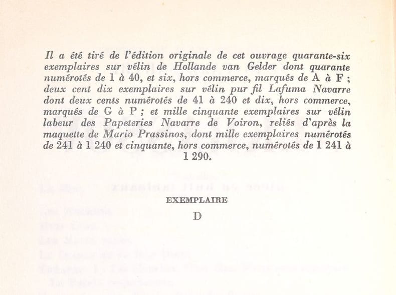 ÉDITION ORIGINALE. UN des 46 EXEMPLAIRES du tirage de tête numérotés sur HOLLANDE van Gelder, celui-ci UN des 6 hors-commerce marqués de « A » à « F » (exemplaire « D »). EXEMPLAIRE non coupé, en PARFAIT ÉTAT. FINE COPY. PICTURES AND MORE DETAILS ON REQUEST.