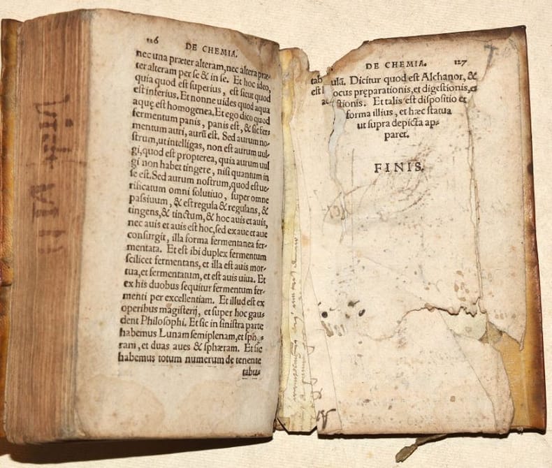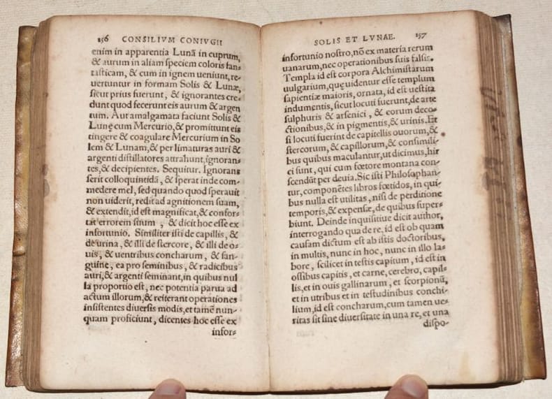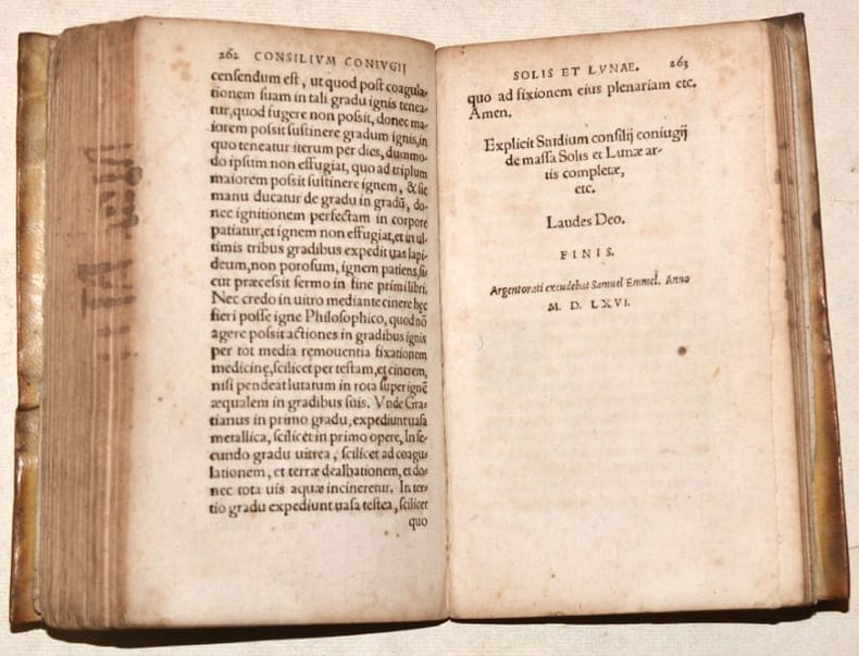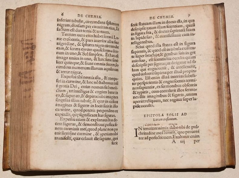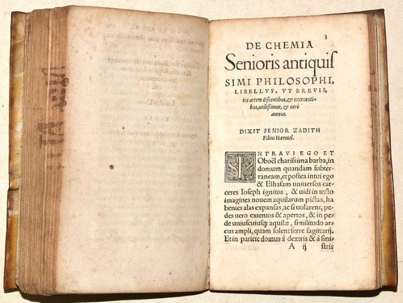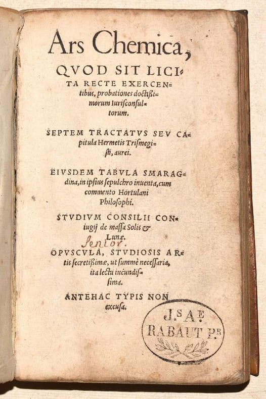 ÉDITION ORIGINALE de DEUX TRÈS RARES PIÈCES D'ALCHIMIE IMPRIMÉES AU XVIe SIÈCLE. La première, "ARS CHEMICA", est consacrée à Hermès Trismégiste ; la seconde est l'oeuvre de SENIOR ZADITH (ou Mohammed ibn Umail al-Tamimi), un alchimiste arabe du Xe siècle qui a écrit plusieurs traités alchimiques dont le "DE CHEMIA" présent ici, plus connu sous le titre de "TABULA CHIMICA". (Ferguson, "Bibliotheca chimica", 49 [pour le premier ouvrage] - 563 [pour le second] - Pas dans Caillet ni Dorbon). De la BIBLIOTHÈQUE de Jacques-Antoine RABAUT, dit RABAUT-POMIER (1744-1820), pasteur et homme politique de la Révolution française. BON EXEMPLAIRE de ces deux très rares traités, conservés dans leur première reliure en vélin de l'époque. GOOD COPY. PICTURES AND MORE DETAILS ON REQUEST.