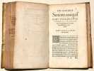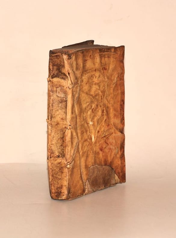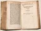 1566-1560 Deux ouvrages reliés en un volume in-12 (160 X 102 mm) vélin ivoire souple à coutures apparentes (Reliure de l'époque). Premier ouvrage : Argentorati [Strasbourg] excudebat Samuel Emmel, 1566. 263 pages - Deuxième ouvrage : [Strasbourg, Samuel Emmel, circa 1560]. 3-127 pages [manque le feuillet de titre qui contient la marque de l'imprimeur avec vignette au verso]. Manque de vélin en partie inférieure du premier plat et en tête du second plat de la reliure, dernier feuillet du second ouvrage en partie collé au contreplat de la reliure (déchirures et manques mais sans atteinte au texte). Quelques notes manuscrites anciennes à l'encre brune en marge du texte. Ex-libris cachet encré « J.s A.e RABAUT P.r ». dans l'angle inférieur droit de la page de titre.