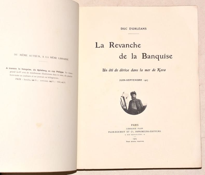 Unique édition de cette relation d'une expédition aux abords de la Nouvelle-Zemble, sponsorisée par le duc et à buts surtout océanographiques. Louis-Philippe d'Orléans (1869-1926) était le fils aîné du comte de Paris, ancien prince royal jusqu'en 1848 (1838-1894), et donc prétendant orléaniste parfois désigné sous le nom de Philippe VII par ses partisans. - - VENTE PAR CORRESPONDANCE UNIQUEMENT