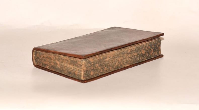 1777 Paris, Bailly, 1777. In-12 (173 X 103 mm) basane brune, encadrement d'un double filet à froid sur les plats, dos lisse compartimenté et orné, pièce de titre maroquin havane, coupes et coiffes filetées, tranches marbrées (Reliure de l'époque) ; (1) f. blanc, XVI-461 pages, (2) pages d'approbation et privilège, (1) f. blanc. Habiles et discrètes restaurations à la reliure.