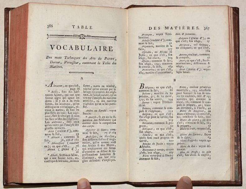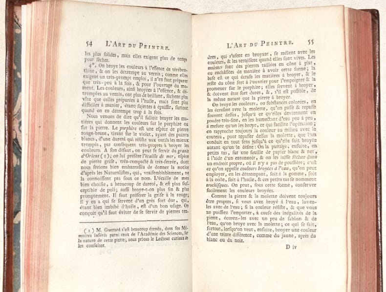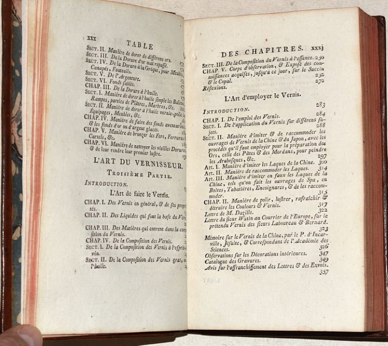 Deuxième édition de cet excellent traité qui comprend la composition et l'explication de l'élaboration des différentes couleurs et vernis, les méthodes d'application de la peinture, de la dorure et du vernis. Cette édition comprend en outre le Mémoire sur le vernis de la Chine (par le père d'Incarville) et un Dictionnaire des mots techniques des arts du peintre, doreur, vernisseur. Quérard X, 491.
