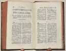 1787 Paris et Liège, desoer, 1787. In-8 (203 X 130 mm) veau fauve granité, dos à nerfs, caissons dorés ornés de fers dorés, chainettes dorées en queue, pièce de titre maroquin fauve, coupes et coiffes filetées or, tranches rouges (Reliure de l'époque) ; XXXII-380 pages, (1) f. blanc. MANQUE le premier feuillet de faux-titre.