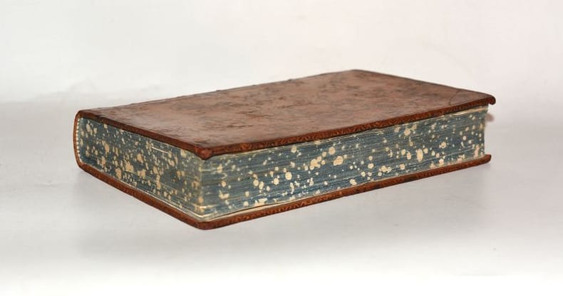1798 Avignon, Chambeau & Comp., 1798. In-8 (207 X 133 mm) basane fauve marbrée, dos à nerfs orné de filets dorés, pièce de titre maroquin havane, tranches marbrées (Reliure de l’époque) ; XII-416 pages, 10 planches. Quelques épidermures au 1er plat, petite trace de choc en tête du mors inférieur.