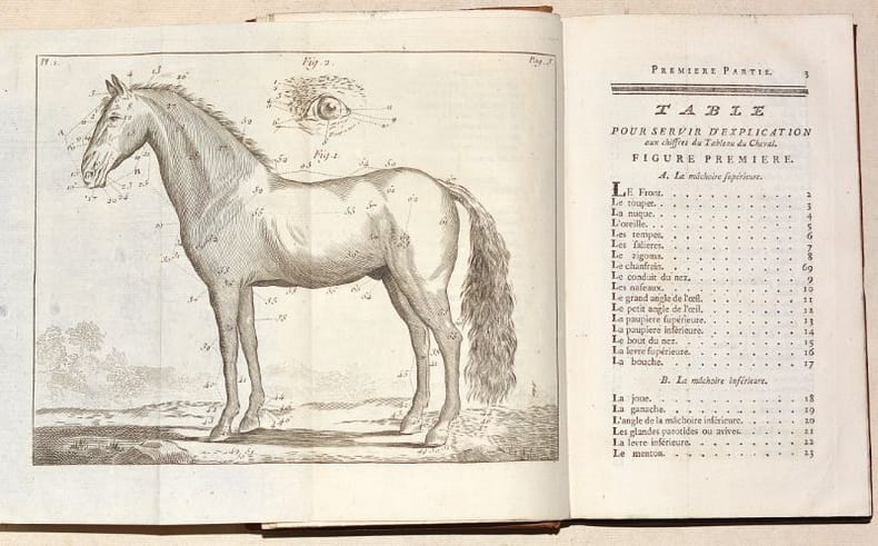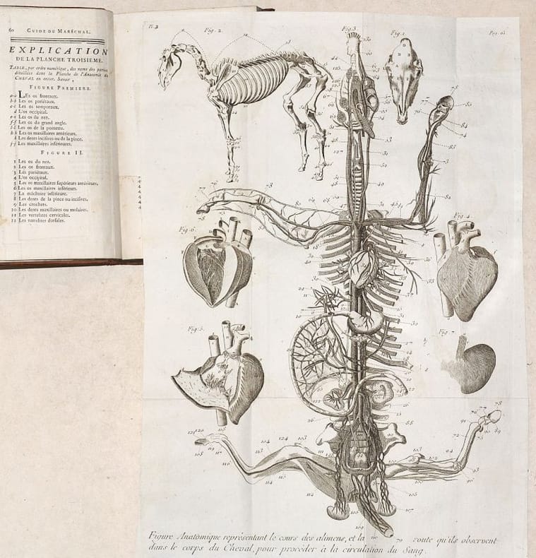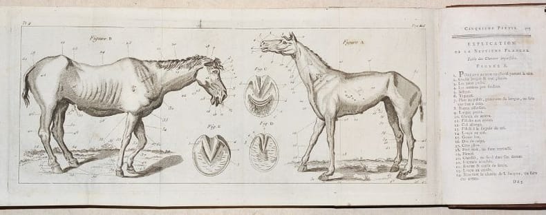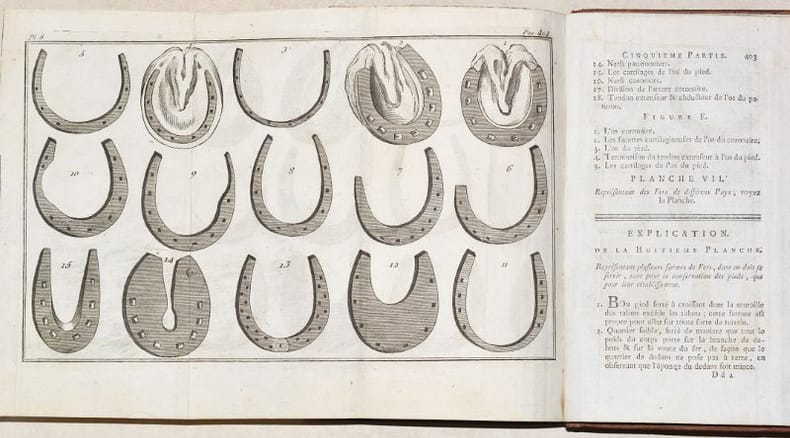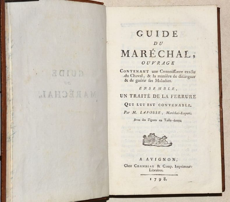 NOUVELLE ÉDITION de ce classique de la maréchalerie, publié une première fois en 1766 au format in-quarto, et qui fut constamment réédité jusqu'au début du XIXe siècle. Cette édition est bien complète des 10 BELLES PLANCHES dépliantes gravées en taille-douce sur papier vergé fort. (Mennessier de La Lance, II-20). BEL EXEMPLAIRE en reliure d'époque, frais et complet des planches. NICE COPY. PICTURES AND MORE DETAILS ON REQUEST.