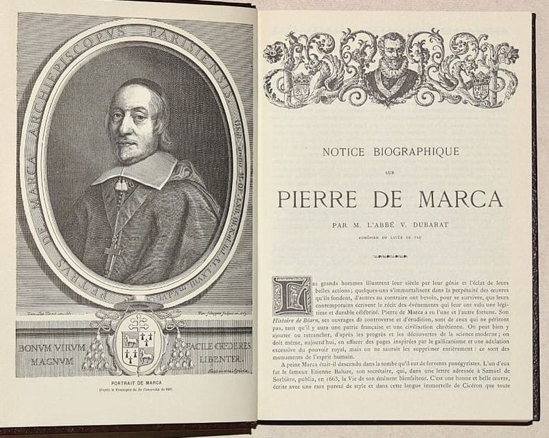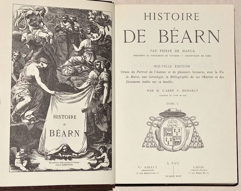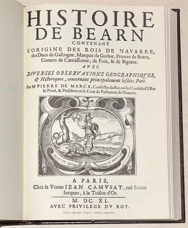 NOUVELLE ÉDITION en fac-similé de l'édition de l'abbé DUBARAT, publiée à Pau en 1894 chez Ribaut et Lafon. Elle est ornée du PORTRAIT de l'auteur et de plusieurs GRAVURES, avec la "Vie de Marca", une "Généalogie", la "Bibliographie" de ses oeuvres et des "Documents inédits sur sa famille". (Dendaletche, 1215 et pp. 56/57 du tome II : « Énorme travail de présentation érudite d'une oeuvre historique fondamentale des Pyrénées » - Labarère, 961). Exemplaire en BEL ÉTAT. NICE COPY. PICTURES AND MORE DETAILS ON REQUEST.
