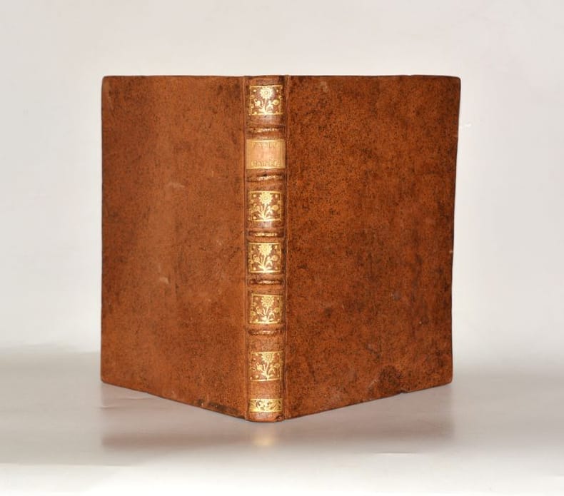 1761 Toulouse, Imprimerie de la Veuve de Me Bernard Pijon, 1761. Deux parties reliées en un volume in-quarto (230 X 181 mm) basane fauve marbrée, dos à nerfs, caissons ornés de fleurons et fers dorés, pièce de titre basane beige, tranches mouchetées en rouge (Reliure de l'époque) ; (1) f. de titre, 229 pages, (1) f. blanc - 34 pages.