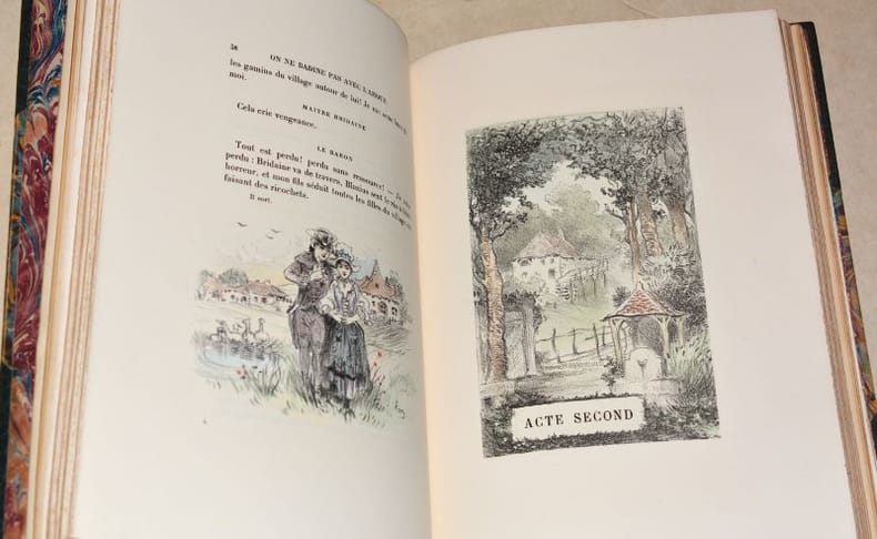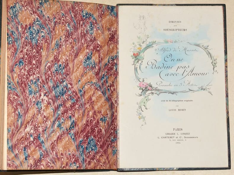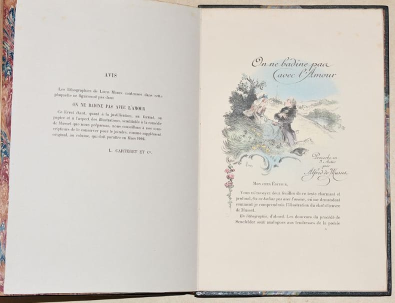 ÉDITION ILLUSTRÉE de 35 LITHOGRAPHIES en couleurs dans le texte et d'une à pleine page sur le premier plat de la couverture, par Louis MORIN (1855-1938). Tirage limité à 200 EXEMPLAIRES de grand luxe sur papier vélin du Marais (n°186). BEL EXEMPLAIRE, très bien relié par Georges CANAPE. FINE COPY. PICTURES AND MORE DETAILS ON REQUEST.