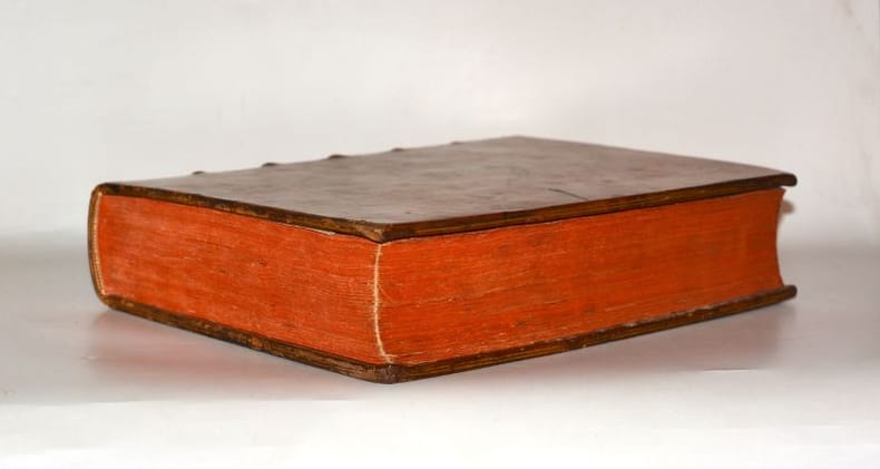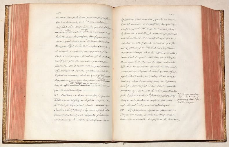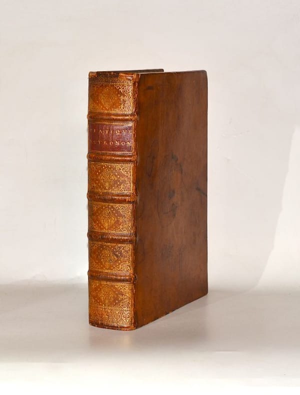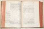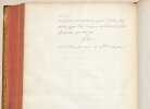 1717 Le 16 d'aoust 1717 à 9 heures du soir. In-quarto (275 X 210 mm) veau havane glacé de l'époque, dos à nerfs, caissons dorés ornés aux petits fers, pièce de titre maroquin grenat, coupes et coiffes filetées, chasses ornées d'une roulette dorée, tranches rouges (Reliure de l'époque) ; (1) f. de titre, 732 pages, (1) f. blanc, 68 feuillets, (1) f. blanc. Petit manque et petites restaurations à la coiffe supérieure, quelques taches sur les plats.