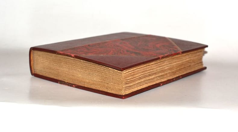 1930 Paris, Adrienne Monnier - J.-O. Fourcade, 1930 [achevé d'imprimer daté « décembre 1929 »]. Petit in-quarto (222 X 178 mm) demi-chagrin cerise à coins, double filet sur les plats, dos lisse orné en long de caissons dorés, titre doré (Reliure de l'époque) ; (2) ff. de faux-titre et titre, 870 pages, (1) f. d'achevé d'imprimer.
