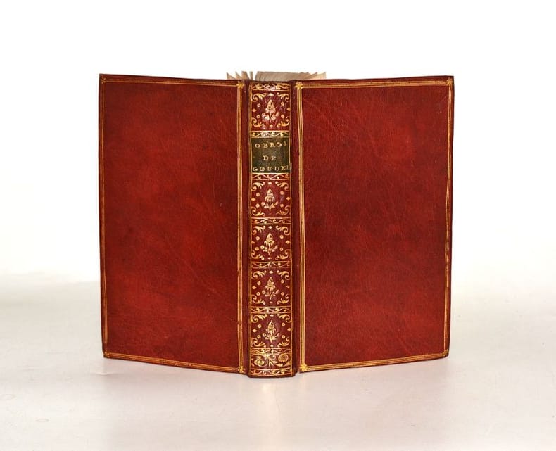 1774 Toulouse, Pijon, 1774. In-12 (172 X 109 mm) maroquin grenat, plats ornés d'un triple encadrement de filets dorés, dos lisse cloisonné de guirlandes dorées et orné de fers et fleurons dorés, pièce de titre maroquin vert bronze, coupes et coiffes filetées or, tranches dorées (Reliure de l'époque) ; XXXVI-382 pages.