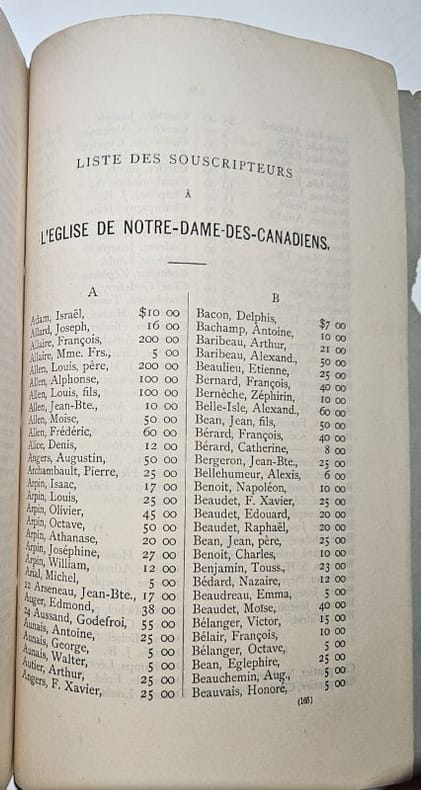 :: Monographie. Comprend la liste des souscripteurs à l'Église Notre-Dame-des-Canadiens, pp.165-171. :: Cousu, petites pertes à la couverture, sinon bon état.