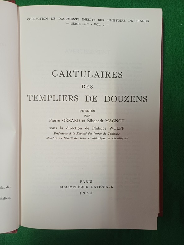 Paris Bibliothèque Nationale 1965 in 8 (24x16) 1 volume reliure skivertex rouge de l'éditeur, XLIII et 363 pages, avec 2 fac-similés et 2 cartes dépliantes in fine. Collection de documents inédits sur l'histoire de France, série in-8, vol. 3. Douzens (Aude). Bon exemplaire ( Photographies sur demande / We can send pictures of this book on simple request )