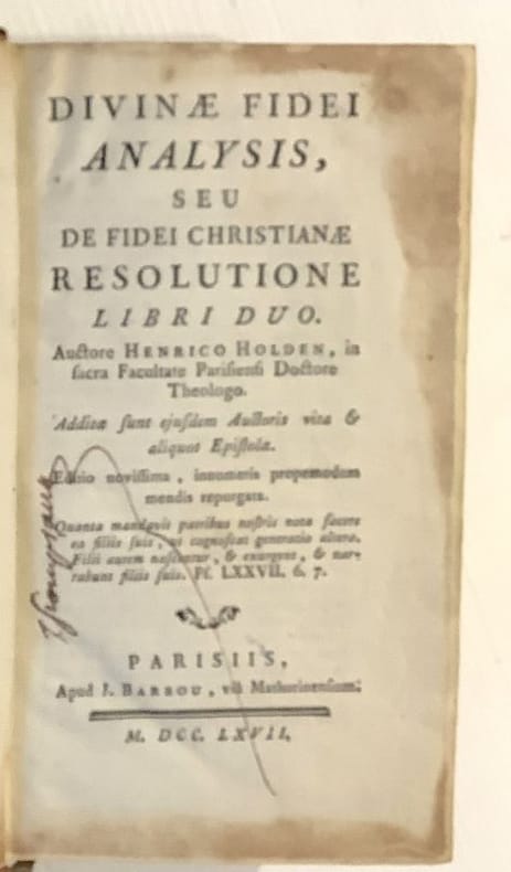 L'ouvrage le plus célèbre de cet ecclésiastique anglais, de confession catholique, qui étudia et vécut en France (Lancashire, 1596 - Paris, 1665). Ce petit ouvrage, dit la Bibliothèque Sacrée, est un petit chef-d'oeuvre en matière de controverse. Il comprend en peu de paroles toute l'économie de la religion... Son dessein a été d'empêcher les disputes qui règnent non seulement entre les catholiques et les hérétiques, mais aussi entre les théologiens catholiques dans les écoles, en faisant voir ce qui doit passer pour certain et pour douteux, ce qui est d'institution divine et ce qui n'est que d'institution ecclésiastique, ce qui est de foi et ce qui est problématique en matière de doctrine ou de discipline. A la fin on trouve le traité De Schismate, et quelques lettres de l'auteur. Bon exemplaire dans une reliure très simple.