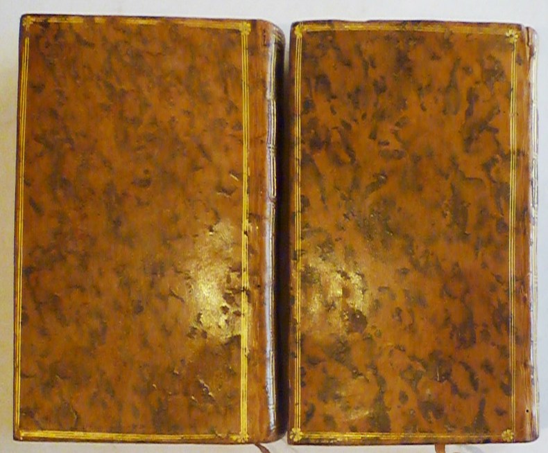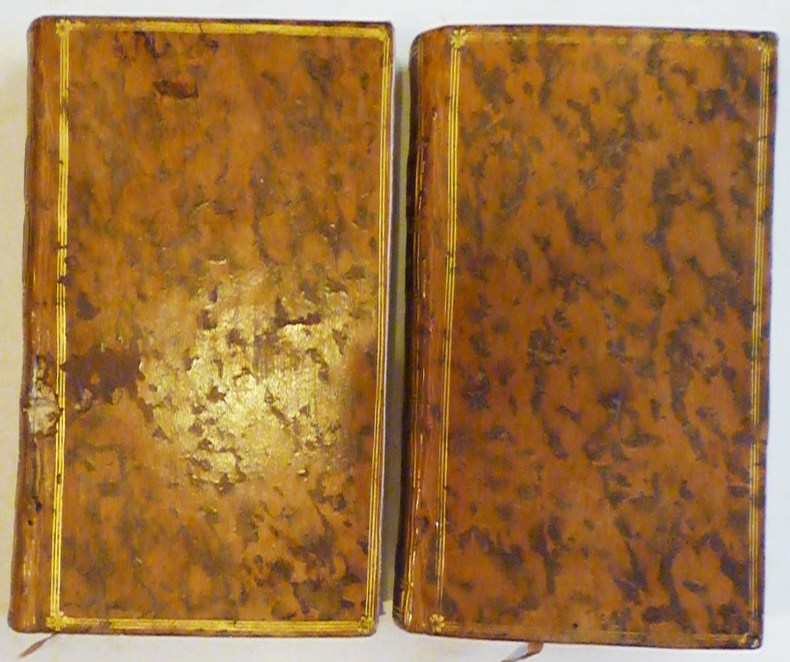 Paris Barbou 1767 2 volumes in-12 (9 X 16 cm) veau havane marbré, triple filet doré encadrant les plats, dos lisse orné de fers dorés, pièce de titre de maroquin rouge, tranches dorées. XXIV + 322 + 284 pp. (Reliure de l'époque).