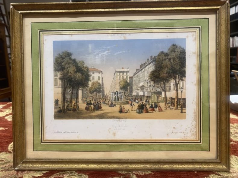 GRAVURE - MARSEILLE - VUE D'OPTIQUE Cours avec personnages de qualité