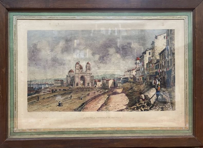 1884 Format 20 X 37 cm, sous vitre et cadre.
