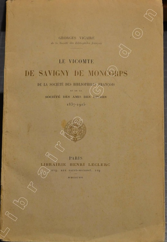 P., Leclerc 1916.In8 broché, 60pp., 2 planches hors texte, bibliographie détaillée des uvres du vicomte in fine.