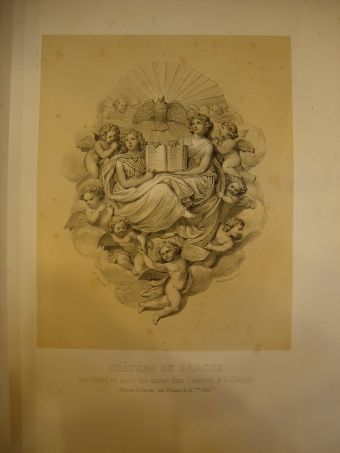 Un volume grand in-8°, peu épais, broché, couverture souple éditeur, 63 pages plus un ‘Placement des figures”... Après la notice sur Jean de Sarcus, constructeur du château (pp. 1-18), on peut lire un avant propos intitulé: “Avant-Propos à l’occasion du Plan et de la vue perspective du château de Sarcus, élevé au commencement du XVIOèùe siècle par J. de Sarcus et abattu en 1833.(pp. 19-30) Le reste concerne la description du Château de Sarcus tel qu’il devait être en 1550 ( pp. 31-63). Ce texte est agrémenté de 7 “figures”. Parmi elles , 3 plans dépliants : une vue extérieure du château de Sarcus, en 1550. Un plan du rez de chaussée de ce même château en 1550 et une sculpture d’un entre-deux d’arcade. Viennent ensuite 4 lithos teintées: un Bas-relief en pierre qui existait dans la Chapelle, un grand Bas relief du fond de la Chapelle, une des 22 Croisées du château et une figure qui manque dans notre exemplaire : divers Détails extraits des décombres de Sarcus. Mais eu égard à la rareté de l’ouvrage et à la fraîcheur des pages et figures, malgré le manque de l’une d’entre elles et malgré diverses traces d’usage et d’âge sur la couverture (froissure, taches et petits manques), nous estimons que cet exemplaire conserve un grand intérêt.