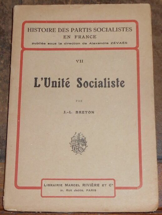 "1912. Paris Librairie Marcel Rivière Histoire des Partis Socialistes en France VII 1912 - Broché 13 cm x 19 cm 87 pages+ 10 de catalogue de l'éditeur - Texte de J. -L. Breton- Dos restauré sinon bon état"