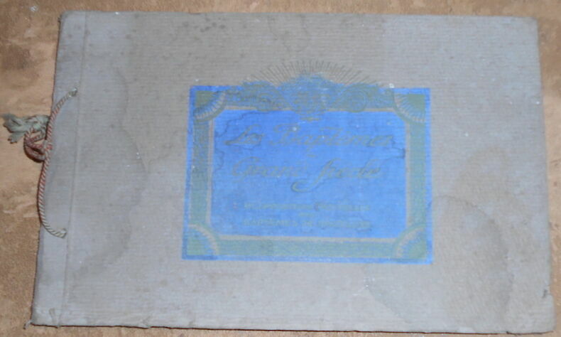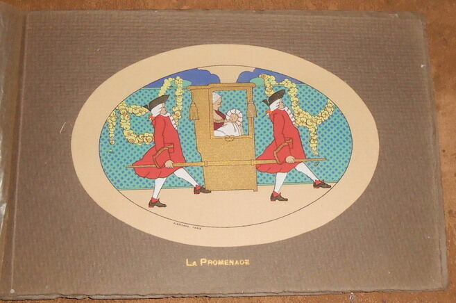 "Paris Éditions Albessard s.d. (circa 1930) - Cartonné cordonnet format à l'italienne 16 cm x 24 5 cm 6 pages illustrées sous serpente ills non signées au pochoir - Couverture tachée légers manques sur les bords de quatre illustrations sinon bon état ; cet album aurait été réalisé pour la chocolaterie « La Marquise de Sévigné » à Royat"