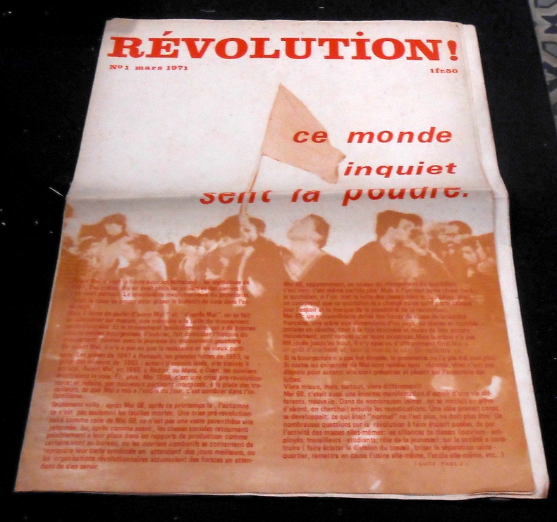 Paris, imprimerie Le Souterrain , mars 1971. Plié, 30 cm x 42 cm, 12 pages (non paginé), photographies in-texte. Directeur de la publication: E. R. Perrin. Bon état