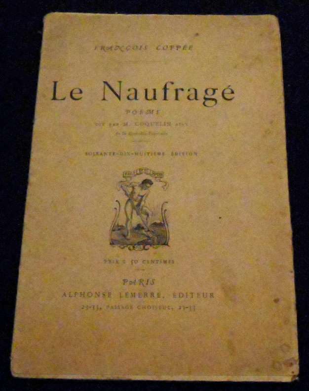 Paris, Éditions Alphonse Lemerre, 1878. Broché, 12 cm x 19 cm, 14 pages. Poème de François Coppée dit par Coquelin Ainé. Bon état