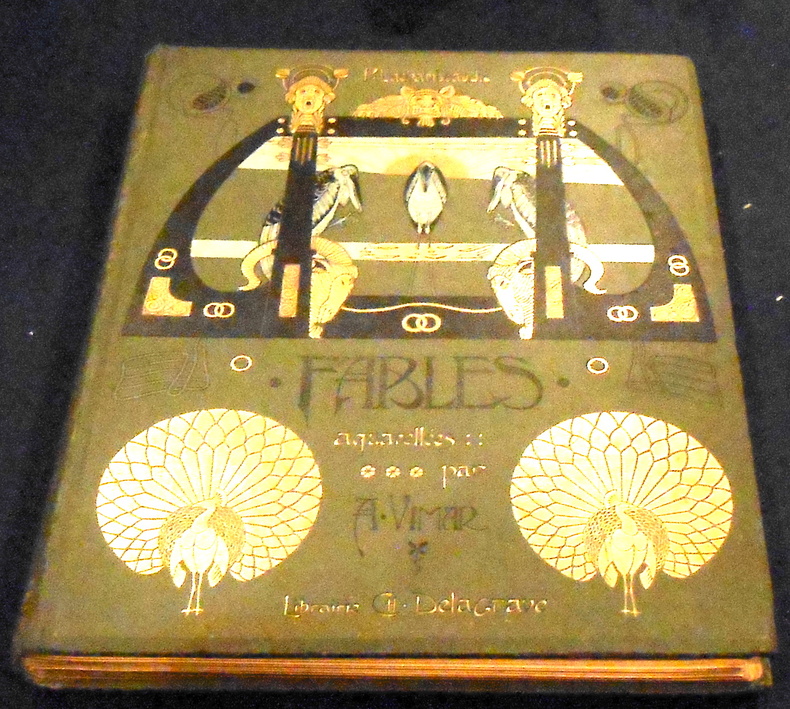 Paris, Librairie Ch. Delagravre, 1902. Cartonnage illustré toilé, tranches dor ées 25,5 cm x 32,5 cm, 162 pages, illustrations pleine page sous serpente et bicolores in-texte. Texte de Lachambeaudie, préface de A. Bourgoin, aquarelles de A. Vimar. Très bon état