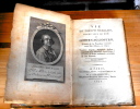 Paris chez Onfroy et Strasbourg, chez Jean-Georges Treuttel, 1791, seconde édition. Reliure d’époque, demi basane, pièces de titre dorées, couverture de relais conservée, 14,5 cm x 22,5 cm, XXVI+ 239 pages. Texte anonyme (Francesco Barberi). Etat d’usage, portrait en frontispice se détachant.