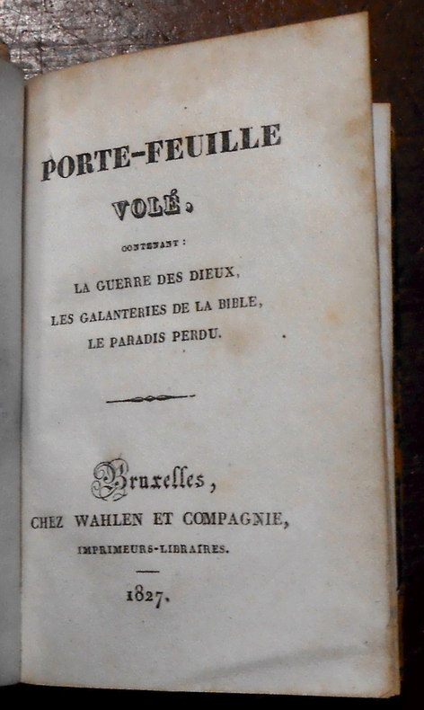 Bruxelles, chez Wahlen et Compagnie, 1827. Relié, 7,5 cm x 11 cm, 293 pages. Poèmes légers de Parny. Etat d’usage