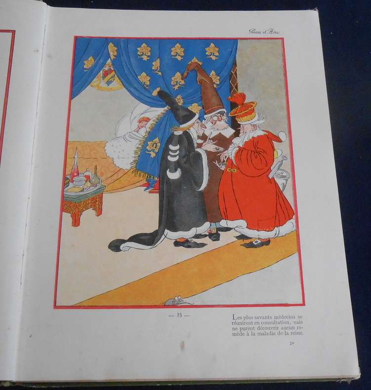 Paris, Éditions Hachette, 1927.. Cartonné, dos toilé, 24,5 cm x 32 cm,72 pages, illustrations couleur pleine page. Textes de Le Petit Chaperon Rouge, Peau d’Ane et La Belle au Bois Dormant d’après Charles Perrault, illustrations de Félix Lorioux, ex-dono. Bon état