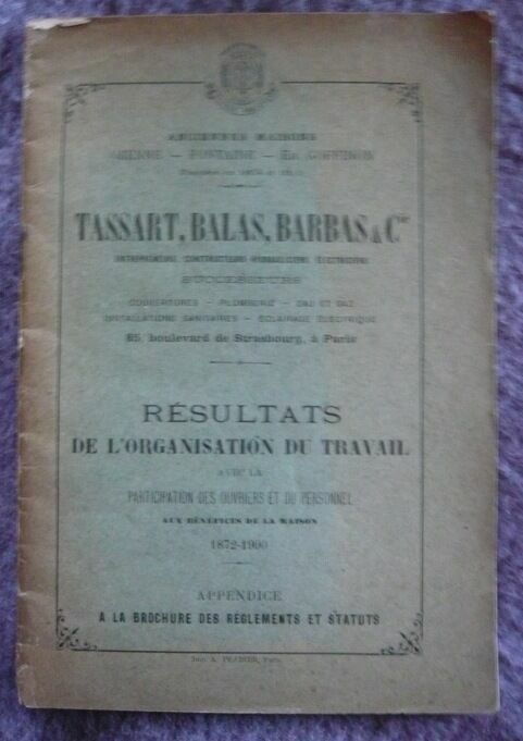 "Paris imp. Pradier sans date (1900) - Broché 15 cm x 23 cm 45 pages - Tableau des participants contrôle des comptes caisse de prévoyance secours mutuel école professionnelle assurance notices biographiques des ouvriers méritants ; l'entreprise est spécialisée en constructions hydrauliques et en électricité - QSuelques manques sinon bon état intérieur"