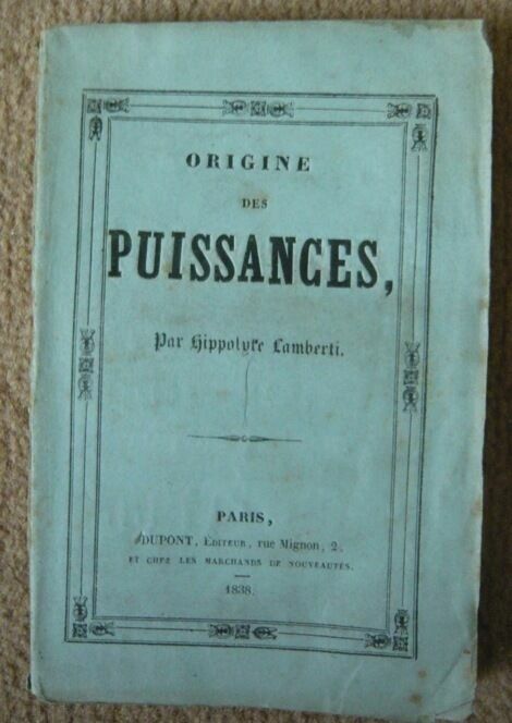 "1838. Paris Dupont éditeur 1838 - Broché 9 5 cm x 14 5 cm 111 pages - Texte de LAMBERTI Hippolyte - Bon état"