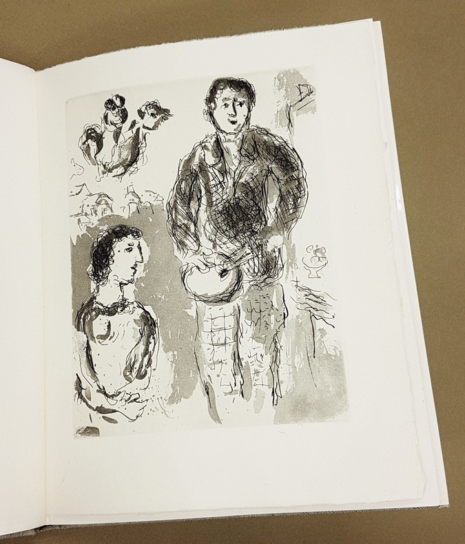 Paris Cramer 1976 In 4° relié toile sous jaquette illustrée, 100 pages, 141 numéros décrits et reproduits. Un des 100 exemplaires signés par Marc Chagall et comprenant une eau-forte originale sur Japon ancien. ( Cramer :" Chagall, Les livres illustrés" N° 102.)