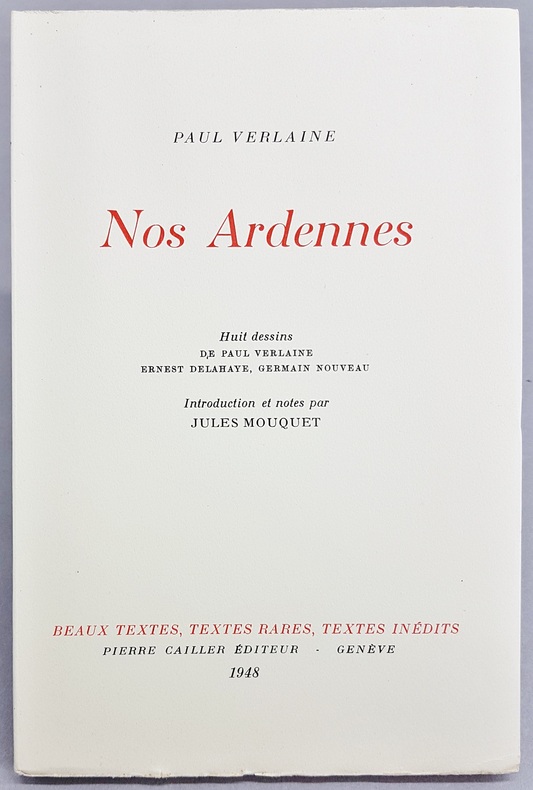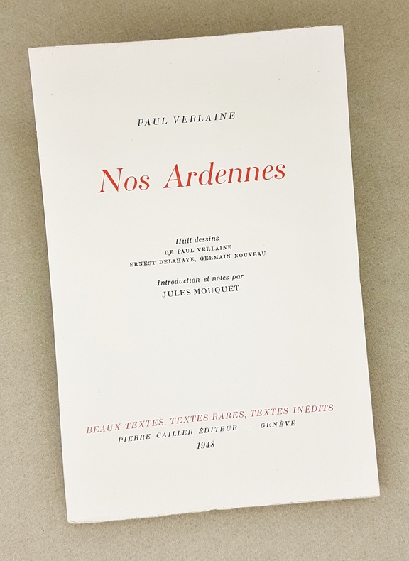 Genève Pierre Cailler 1948 In-8, broché, non coupé. 74 pp., [5 ff.], 8 dessins de Paul Verlaine, Ernest Delahaye, Germain Nouveau. ÉDITION ORIGINALE. 1/2000 exemplaires numérotés sur papier chamois. Rethel, Vouziers et leurs entours