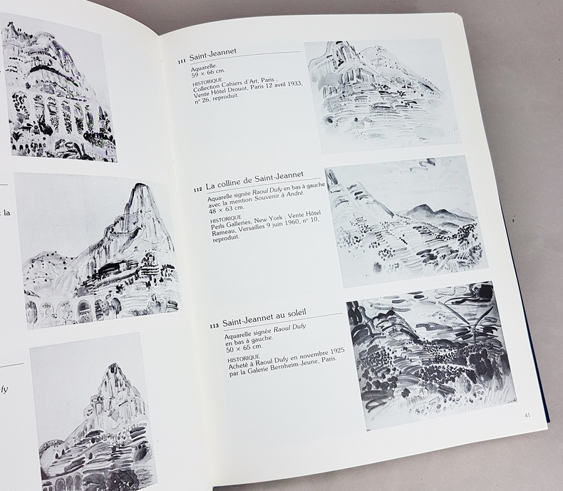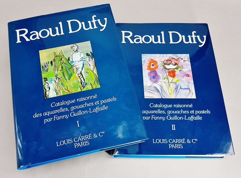 Paris Louis Carré 1981 1982. 2 volumes in 4 reliés toile bleue, jaquettes illustrées. LXXIII - 395 pages et LVII- 439 pages. Catalogue Raisonné Des Aquarelles, Gouaches et Pastels de Raoul Dufy. 2027 oeuvres décrites et reproduites. Tirage limité à 1000 exemplaires numérotés. Bel exemplaire.