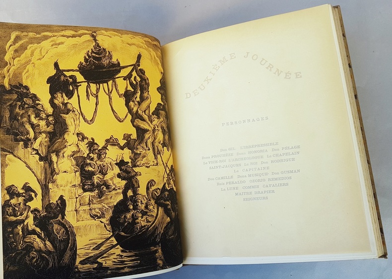 Paris Gallimard 1928 1929. Quatre volumes in-quarto, demi reliure de chagrin fauve, têtes dorées, couvertures et dos conservés, 132 - 118 - 153 et 171 pages,Quatre frontispices lithographiés, tirés en noir sur fond or, du peintre José Maria Sert. Tirage limité à 331 exemplaires, celui-ci un des 275 numérotés sur pur fil (N° 123). Exlibris Palle Helmer-Petersen.