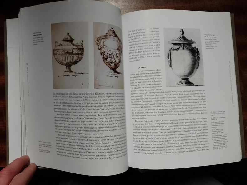 Paris, Editions du patrimoine, "Temps & espace des arts", 2005, 22 x 28, 176 pages cousues sous couverture rempliée illustrée. Iconographie noir & blanc et couleurs. "Dans les années 1730-1740, la " rocaille " connaît en France un épanouissement sans pareil, et tous les intérieurs se couvrent d'une débauche d'ornements dissymétriques alliant le minéral et le végétal. Mais les réactions ne tardent pas. Des théoriciens aspirent au retour du " goût simple et noble de l'antique ". Marc-Antoine Laugier, influencé par l'enseignement de l'érudit vénitien Carlo Lodoli, prône la supériorité d'une architecture fonctionnelle dont il retrouve en Grèce les fondements. Dans ce contexte, l'influence des idées et des œuvres de Piranèse puis l'étude simultanée des ruines grecques et romaines vont conduire à une évolution progressive des formes. Les artistes en résidence à l'Académie de France à Rome élaborent peu à peu une syntaxe et un vocabulaire nouveaux. Parmi ces pensionnaires se succéderont de jeunes architectes, Clérisseau, Peyre, De Wailly, Moreau, Chalgrin, qui côtoient dans la cité romaine leurs confrères étrangers, les Anglais William Chambers et Robert Adam, le Belge Laurent Benoît Dewez... Une profonde mutation se produit alors, qui donne naissance à un changement esthétique majeur, le " goût à la grecque ", prélude au néoclassicisme. Ainsi le piranésisme laissera-t-il son empreinte jusqu'à la fin du siècle sur plusieurs générations d'architectes, comme en témoignent les œuvres de Sir John Soane, d'Etienne Louis Boullée et de Claude Nicolas Ledoux."