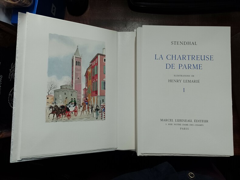 Paris, Marcel Lubineau éditeur, 1970, 19 x 27, 3 volumes en feuilles d'environ 280 pages chaque, sous chemises souples imprimées et cartonnées décorées. Texte orné de 54 compositions originales couleurs d'Henry Lemarié (18 pour chaque volume). Tirage à 1200 exemplaires. Celui-ci, - un des 1050 sur vélin de Rives numéroté 334.