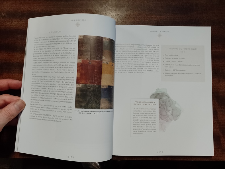 Paris, Editions Eyrolles, 2019, 21 x 26, 120 pages cousues sous couverture rempliée illustrée. Iconographie couleurs. "Véritable manuel pratique, cet ouvrage détaille l'utilisation des jus d'oxydes aux céramistes désireux d'expérimenter ou d'approfondir cette technique de décoration. La littérature est rare à ce sujet, pourtant ce procédé simple produit une gamme unique de couleurs naturelles. A partir … Véritable manuel pratique, cet ouvrage détaille l'utilisation des jus d'oxydes aux céramistes désireux d'expérimenter ou d'approfondir cette technique de décoration. La littérature est rare à ce sujet, pourtant ce procédé simple produit une gamme unique de couleurs naturelles. A partir de 33 oxydes et de 17 produits de bases céramiques, l'auteur a réalisé plus de 740 recettes dont il expose les résultats en image sous forme de tuiles colorées. L'explication de sa démarche (choix de la terre, classification, dosage et association des oxydes, présentation des recettes et de leurs résultats) vous permettra de reproduire aisément les formules proposées et constituera une base de recherche pour vous lancer dans votre propre exploration des jus d'oxydes."