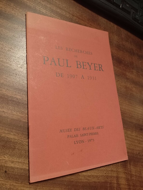 Lyon, Palais Saint-Pierre, 1975, 15,8 x 24, 30 pages agrafées sous couverture souple imprimée. Outre un portrait photographique de Paul Beyer en frontispice et une page de ses signatures, cette plaquette comporte XIX reproductions noir & blanc. Ouvrage publié à l'occasion de l'exposition présentée au Palais Saint-Pierre en 1975.